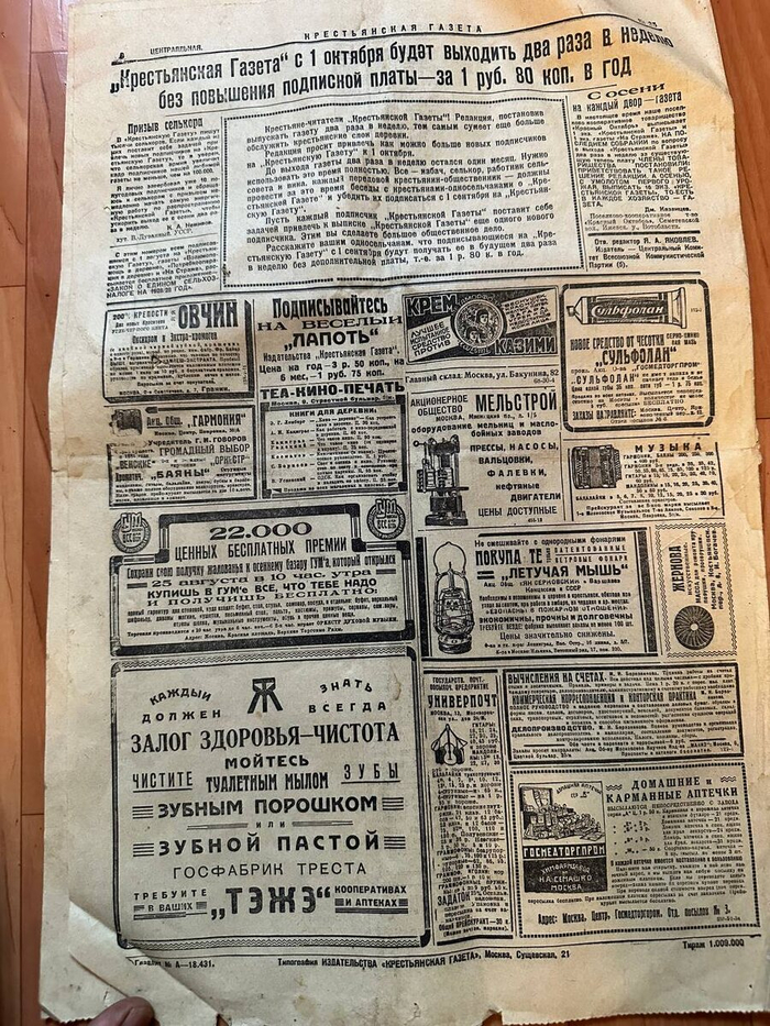 Всем привет. Вчера, в этой статье я хвалился находками из старого дома. Там были и несколько газет, в довольно хорошем сохране. И в той же статье, я анонсировал, что буду отдельно публиковать фото этих самых газет.