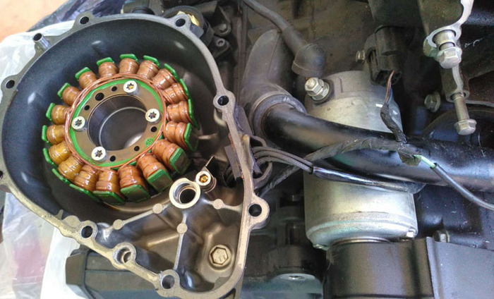 Снял левую боковину - там стартер и генератор.