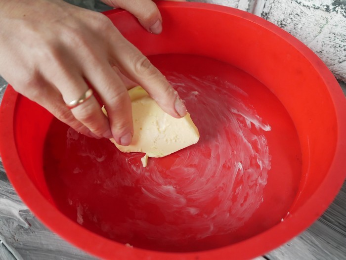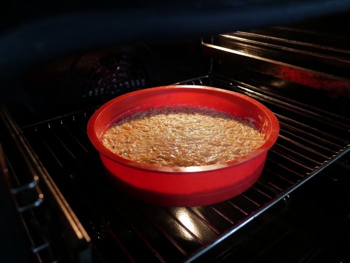 В силиконовую выкладываем тесто и немного разравниваем.