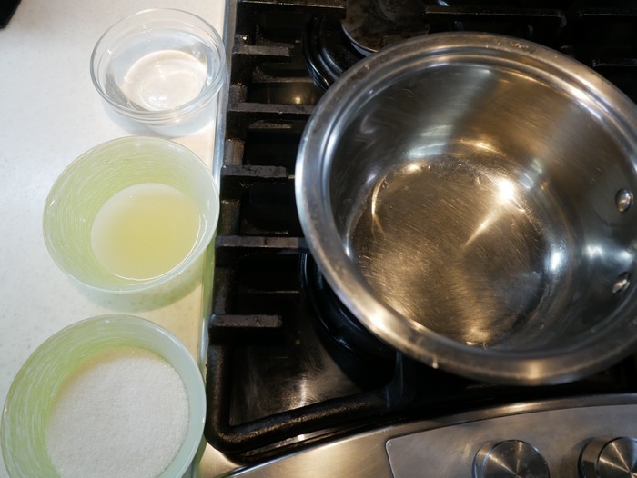 Лимонный сироп. Четверть стакана сахара добавляем в 3 столовые ложки лимонного сока и отправляем на пол минутки в микроволновку или на водяную баню.