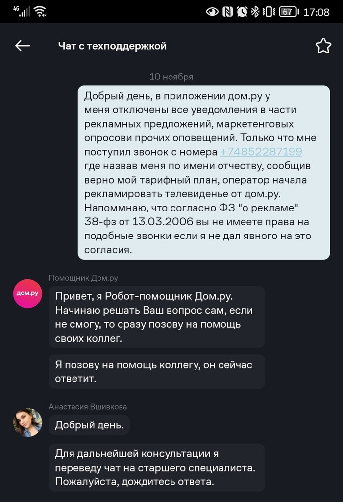 Очередное наплевательское отношение к закону у оператора связи (Дом.Ру)