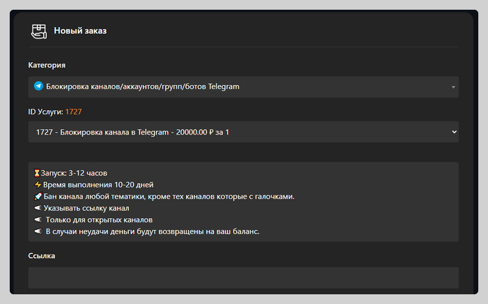 Предложение о блокировке каналов на одном из сервисов накрутки