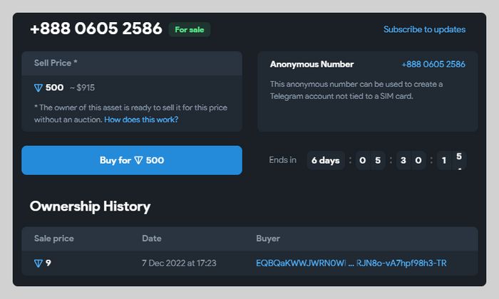 В случае с таким юзернеймом дополнительную ценность можно создать с помощью уже готового канала — можете сначала выставить юзернейм на Fragment и потом передать канал покупателю, а можете сразу продать канал вместе с юзернеймом, чтобы новый владелец уже самостоятельно конвертировал юзернейм в коллекционный.