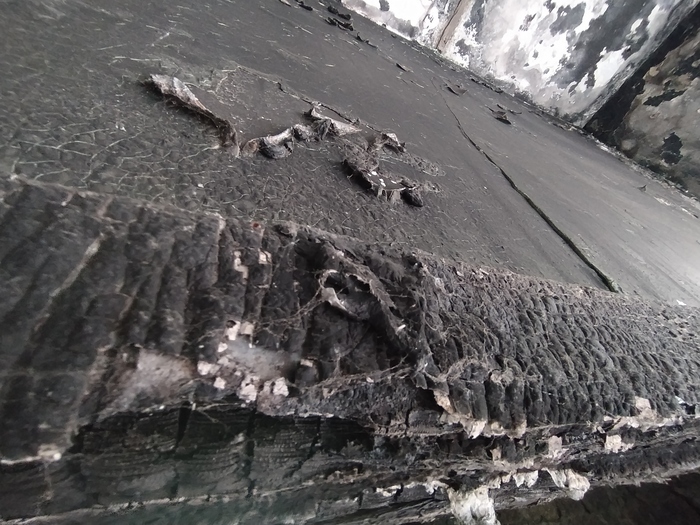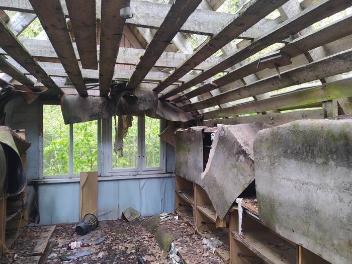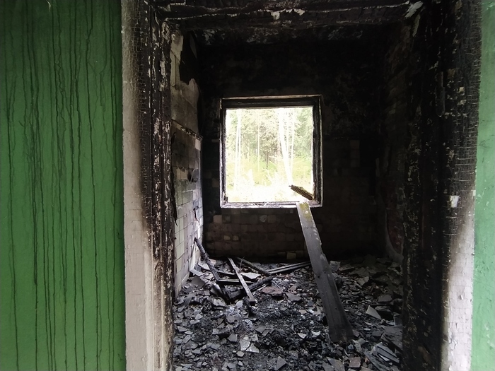 Так уж получилось, все фото выше - кухня и столовая. Единственное сгоревшее здание, что особенно привлекает текстурами горелого дерева и штукатурки.
