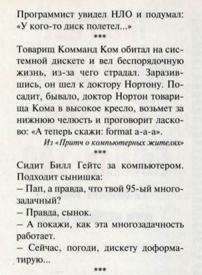 583 dOzmey 1 месяц назад IT-юмор Погоди1 1998 - Игромания №03 Показать полностью 1 Вырезки из газет и журналов Олдфаги Олдскул Юмор Windows 95 Ностальгия Дискета Анекдот Зашакалено 80 13 4 3 3 Ещё 0