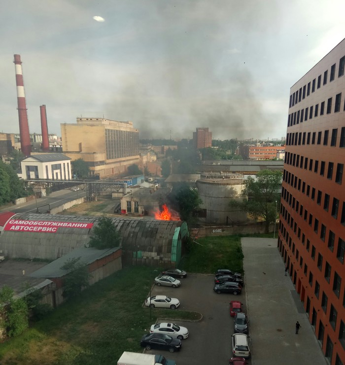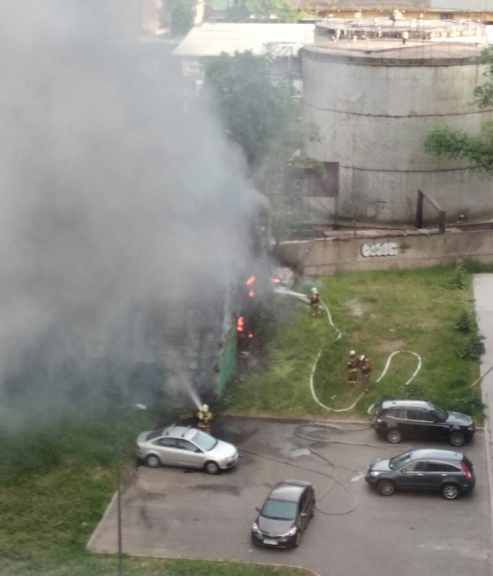 Машину одну отодвинули добрые люди, пожертвовал свои огнитушитель когда спускался отогнать свой авто. Сижу наблюдаю как тушат. Фото сделаны мной тег моё.
