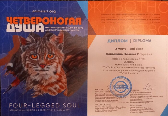 С этой картиной я поучаствовала в выставке "Четвероногая душа" от Евразийского Художественного Союза, прошедшей с 30.12.25 по 11.01.26 в ТЦ Киевский. Заняла 2 место.