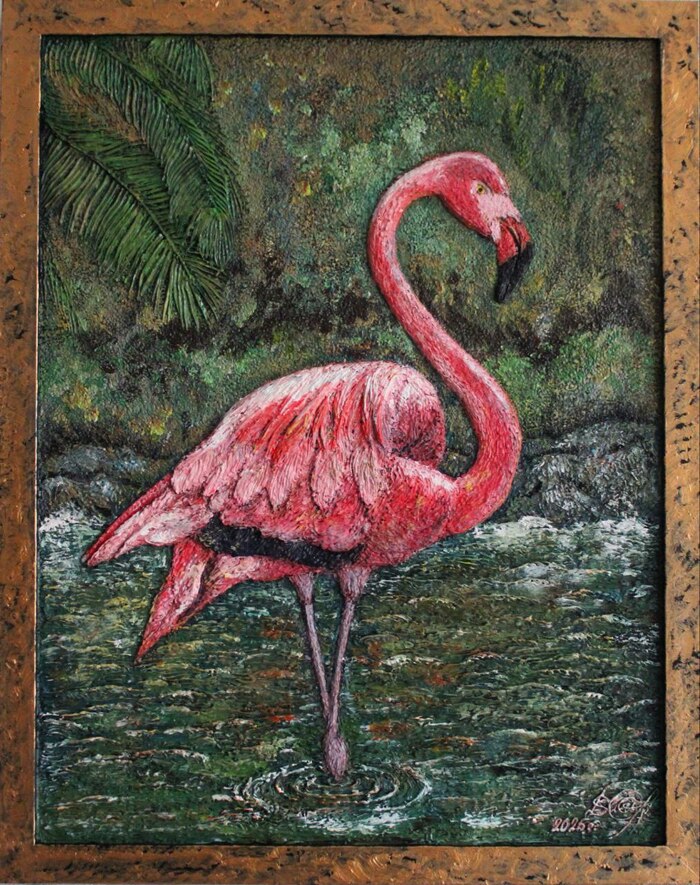 Идею с фламинго я откладывала дольше остальных. Бывает, что работа должна в голове как-то "дозреть" - и вот эта птица ждала своей очереди месяца четыре.