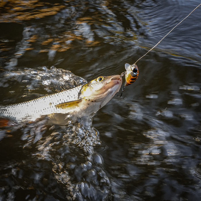 При равномерной проводке он играет как обыкновенный поверхностный кренк.