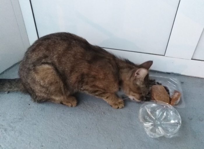Ищет себе новую хозяйку или хозяина это милое создание с карими глазами(сфоткать мордочку не удалось, очень голодная была котейка) , бывшая хозяйка выгнала из дома(на сколько это правда не знаю, но сейчас все может быть), кот или кошка попал(а) на улицу, к которой совсем не приспособлен(а) , так как очень ласковая и доверчивая, а в районе очень много собак, на улице одна она долго не протянет, может тут кому нужна мурлыка в дом?)
