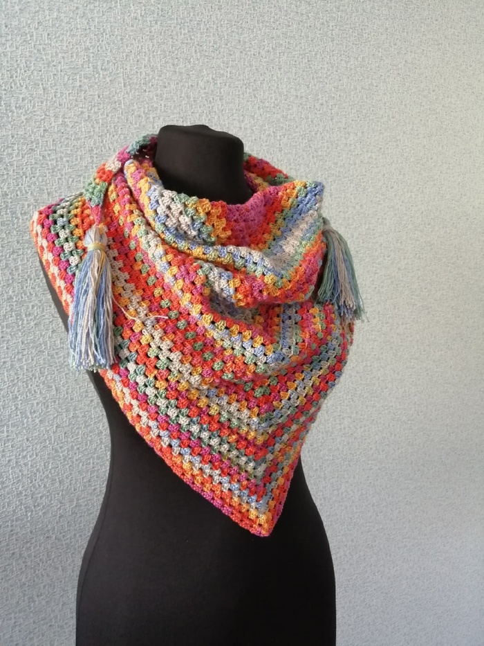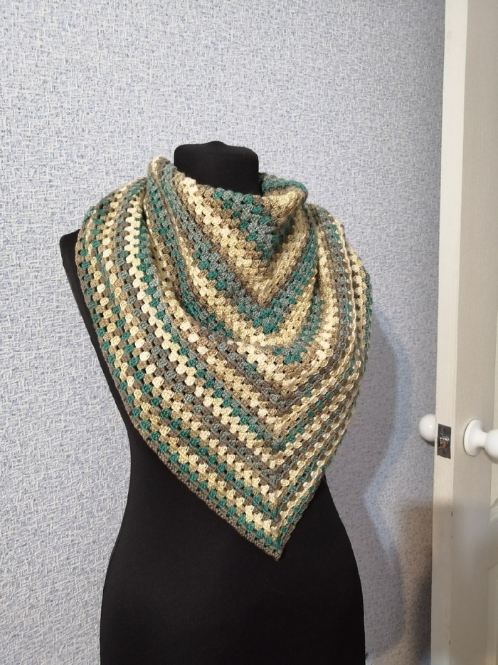 История началась с того, что мне в руки попала носочная пряжа. Вязать носки я не люблю, так что начала вязать косынку.