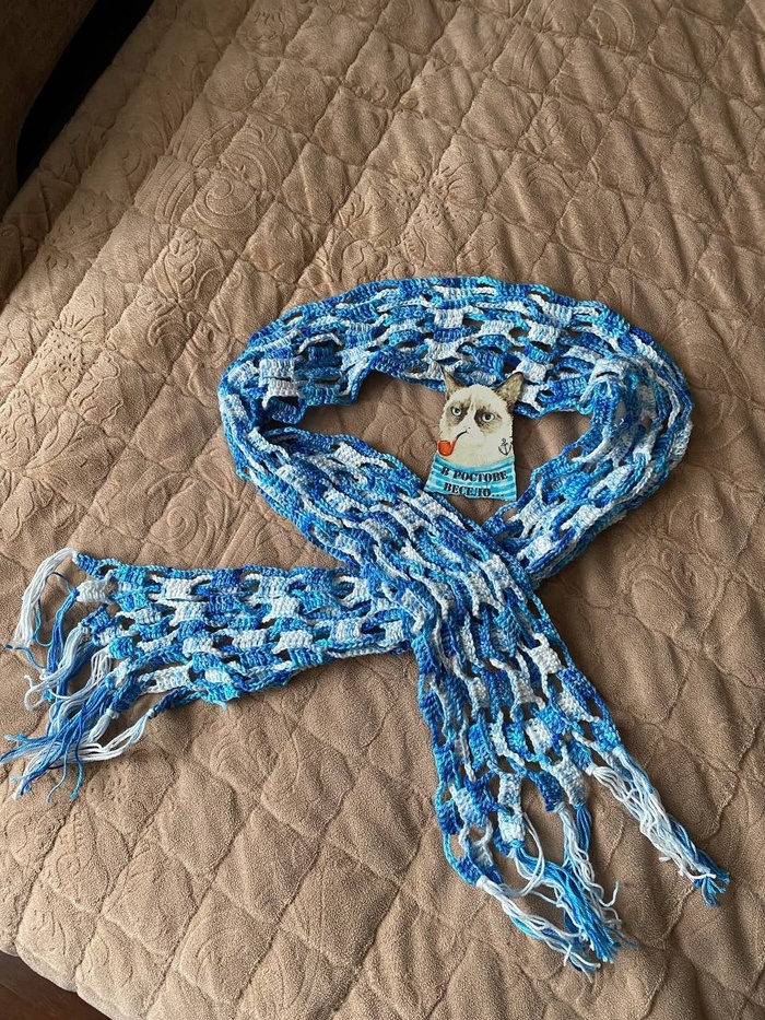 На самом деле, пряжа потрясающая. Шарф получился мягким, в такой хочется обернуться и никогда не разворачиваться. По крайней мере пока не потеплеет.