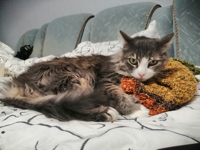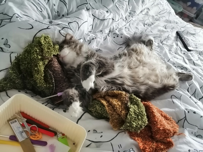 Так же его оценил кот Бася и упорно мешал его довязывать. Знает, чертяка, толк в хорошей пряже))