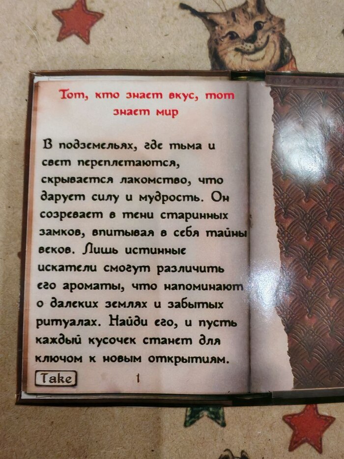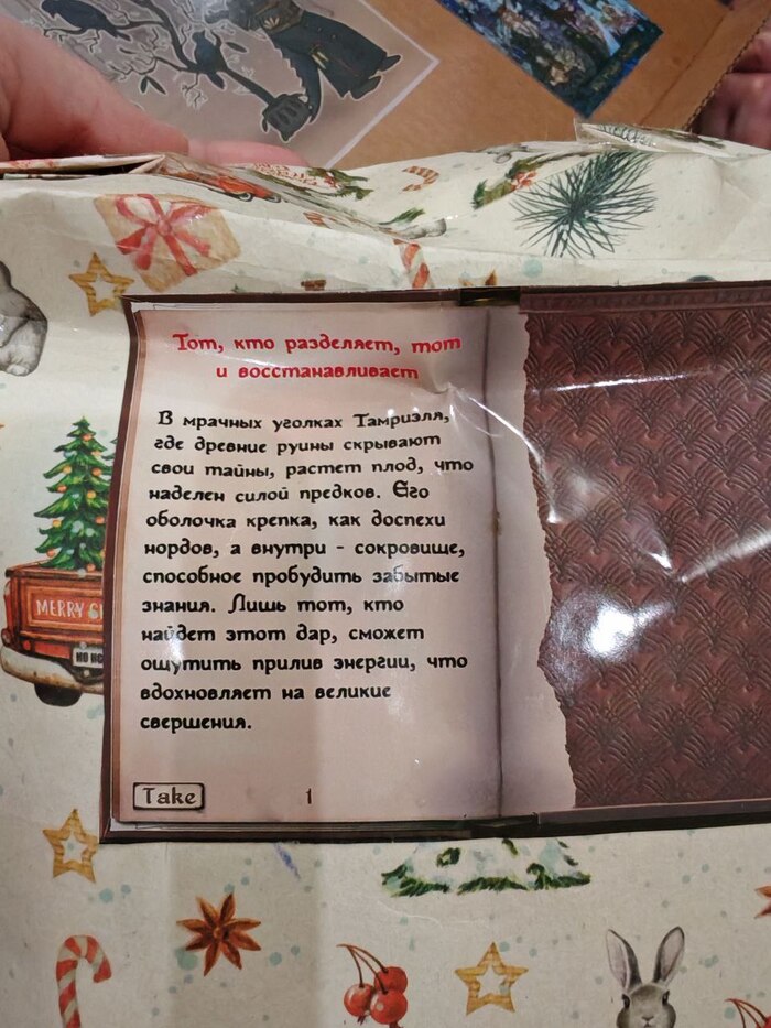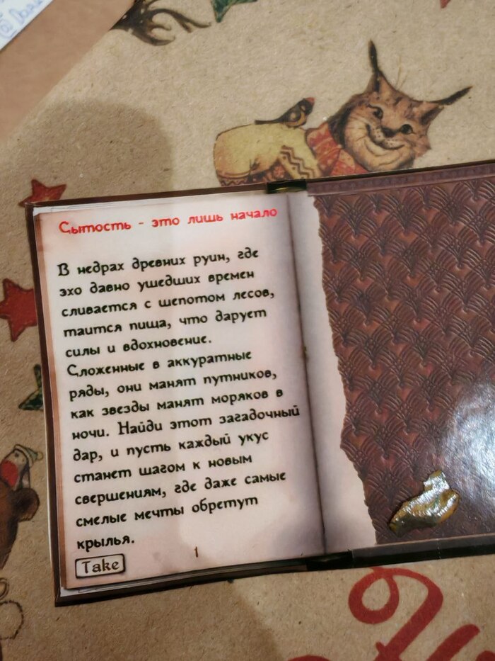 Сначала покажу прекрасное. Это наклейки на подарках. Шикарная получилась игра, мы сначала читали описание и пытались угадать, что внутри. Дорогой мой Дедушка, я поражаюсь и трепещу перед тем, сколько фантазии и труда в это вложено.
