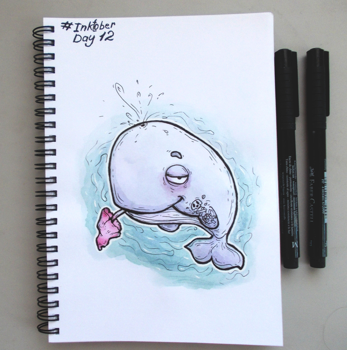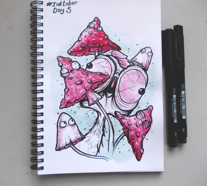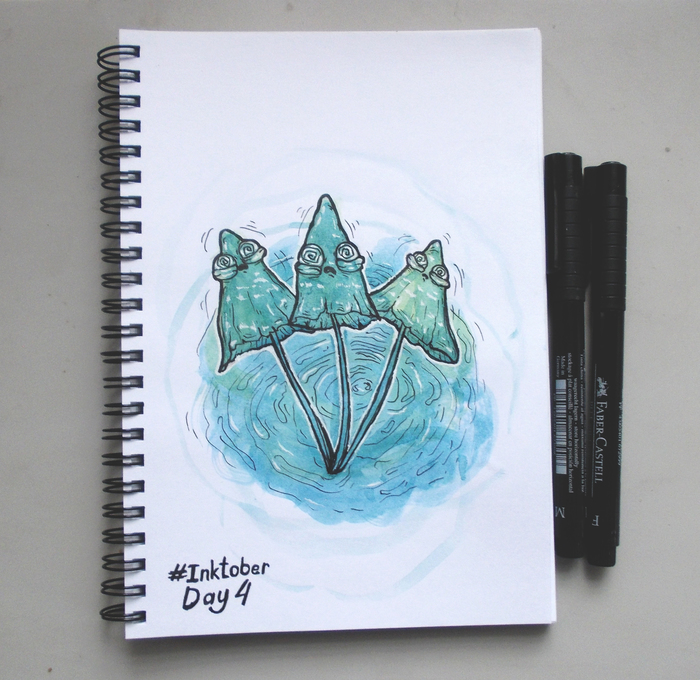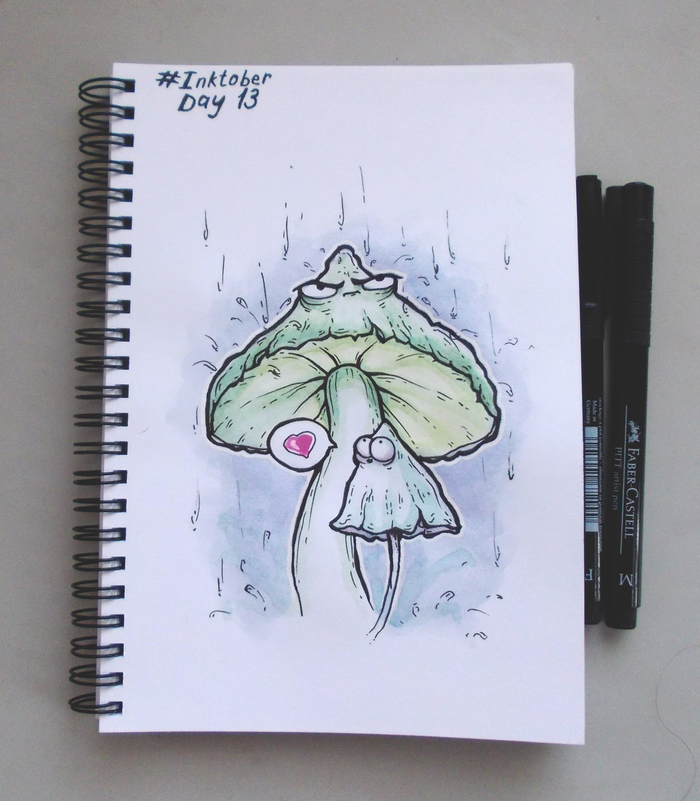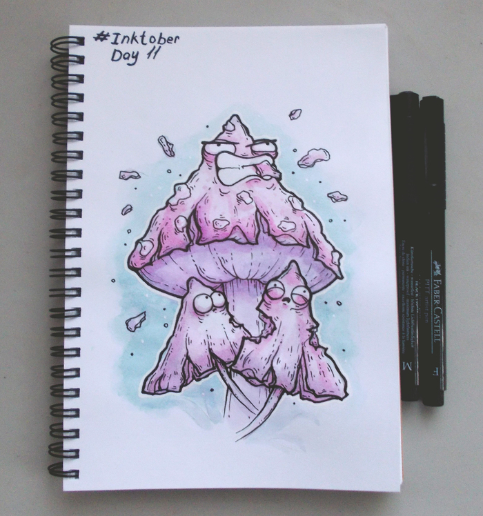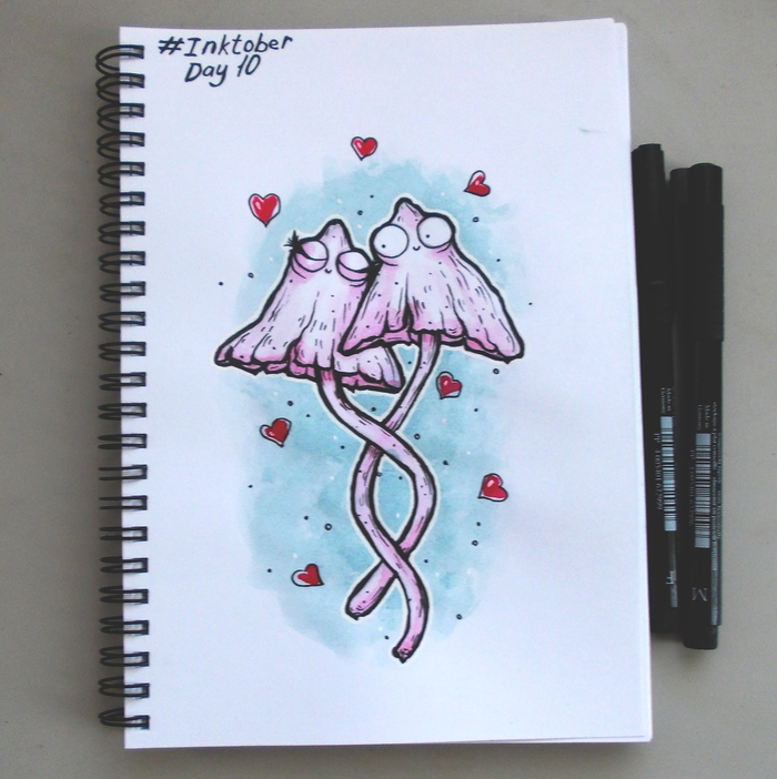 Инктобер, который вышел из под контроля. Я в курсе, что по канону можно использовать лишь тушь и бумагу, но мне захотелось добавить акварельки.