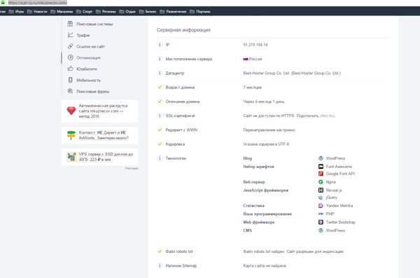 http://mkuznecov.com Сайт персонального фитнес тренера Михаила Кузнецова. Сайт сделан 7 месяцев назад, в качестве CMS используется Wordpess. Думаю, Михаил Кузнецов не в курсе, что его сайт служит для таких целей. Но судя по наполнению "и так сойдет", сайту скорей всего совсем не уделяется внимание.
