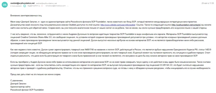 Касательно ситуации с SCP Foundation. Официальное заявление от 29.06.19.