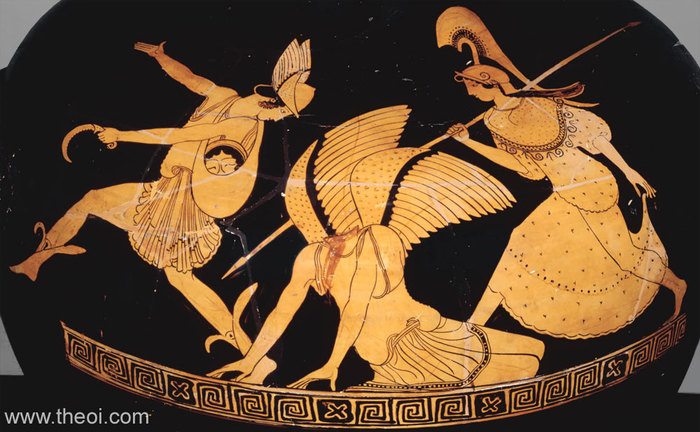 В этом отрывке интересны три момента. Во-первых, непонятно, о какой «форме музыкального искусства» идет речь. В позднее время Афина действительно покровительствовала искусствам, но какую музыку она могла «сплести» из «смертоносного плача» Горгон? Этот «смертоносный плач» – второй любопытный момент. Похоже, что не только взгляд Горгон был опасен, но и их голос.