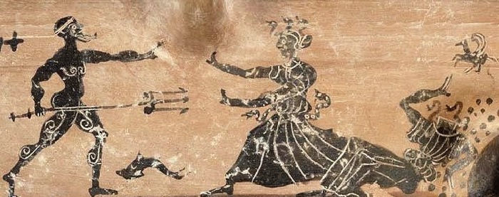 Дальше в одном из эпизодов Гомер пишет, что у Гектора «глаза Горгоны», имея ввиду боевое неистовство. Похоже, что изначальная функция горгонейона все-таки контрастировала с мифом о Медузе. Он носил не защитную функцию, как впоследствии. Его целью было напугать врага. Это напоминает мне особый тип исландских гальдраставов, которые сегодня называют эгисхьяльмами.