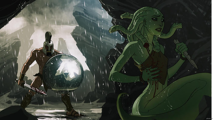 Мне сложно согласиться с этой мыслью. Во-первых, потому что, как я уже сказал, мы не знаем оригинальных мифов и возможного подтекста. Во-вторых, во всем, что случилось с Медузой, виновен отнюдь не один лишь Посейдон. В той же степени виновна и скорая на расправу Афина, которая даже не попыталась разобраться в ситуации. В-третьих, остается открытым вопрос об «особом взгляде» Медузы. Я уверен, что он здесь ключевой, потому что он пронизывает миф лейтмотивом от начала и до конца. Вполне возможно, что под «взглядом» подразумевалось некое трансцендентальное знание, борьба за обладание которым и выступает ключевой сюжетной коллизией.