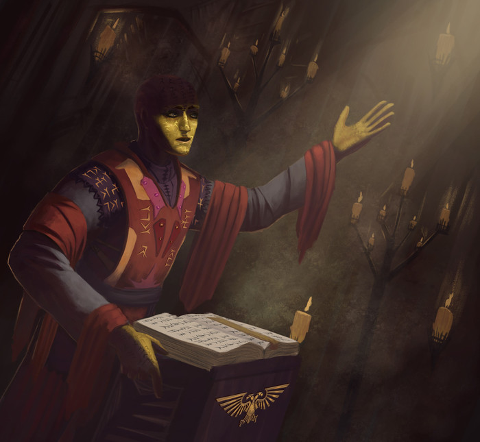 «Эти воины были созданы искусством марсианского жречества. Милостью всемогущего Императора они теперь с вами. Прекратите задавать вопросы и возрадуйтесь той чести, которая оказана вам в этот день. Вам вручил дар надежды сам бессмертный Повелитель Человечества, и вы примете это с искренней и торжественной благодарностью, чтобы вас самих не приняли за предателей, которых вы так ненавидите».