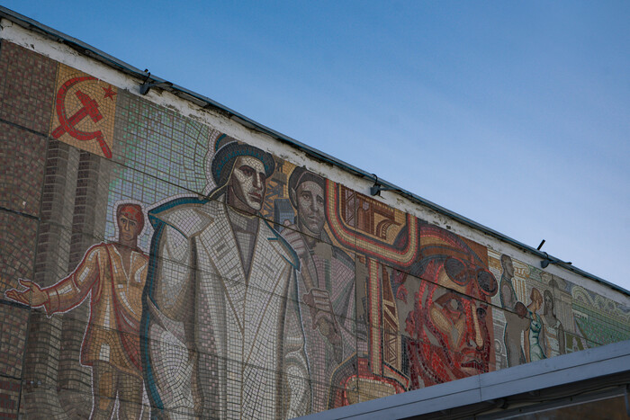 А если отойти чуть подальше, на соседнем доме можно заметить мурал с туристом, фотографирующим ту самую ракету.