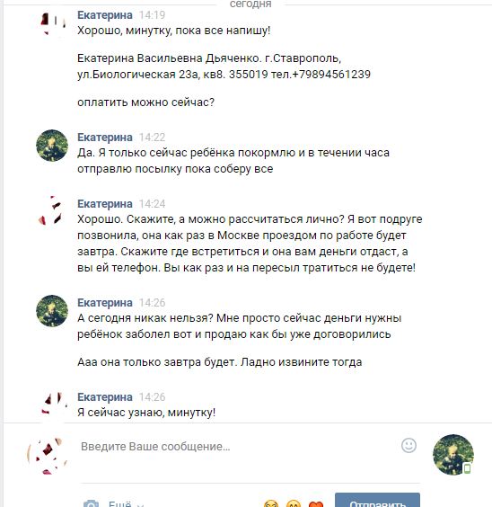 P.S. Немного пошарив в гугле, наткнулась на ее посты в барахолках разных городов в ВК. В некоторых группах эту даму уже заблокировали, а в некоторых она все так же пилит посты со своим айфоном, который у нее почему-то никто еще не купил :)