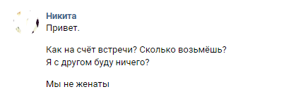 Дальше еще больше! Внезапно ко мне в личку стали ломиться альфа самцы с вопросами "Сколько берешь?". Я была в недоумении и в шоке. Ровно до тех пор, пока ко мне не постучался еще один парень со скриншотом.
