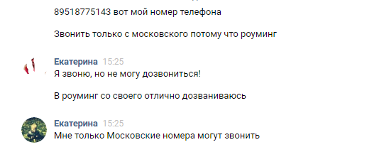 Придумать левый адрес и номер труда не составило. Собственно, моей собеседнице тоже это далось легко. Т.к. дальше она говорит о том, что дозвониться на ее номер могут только жители Москвы. Потому что Роуминг!
