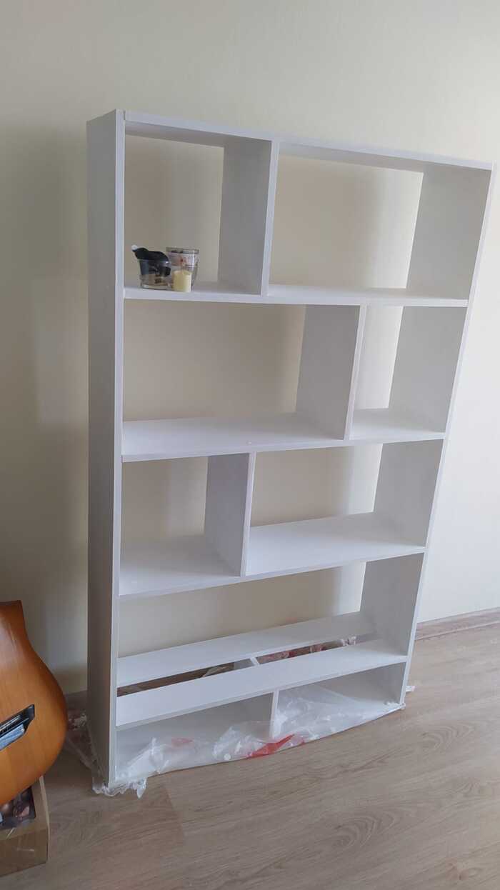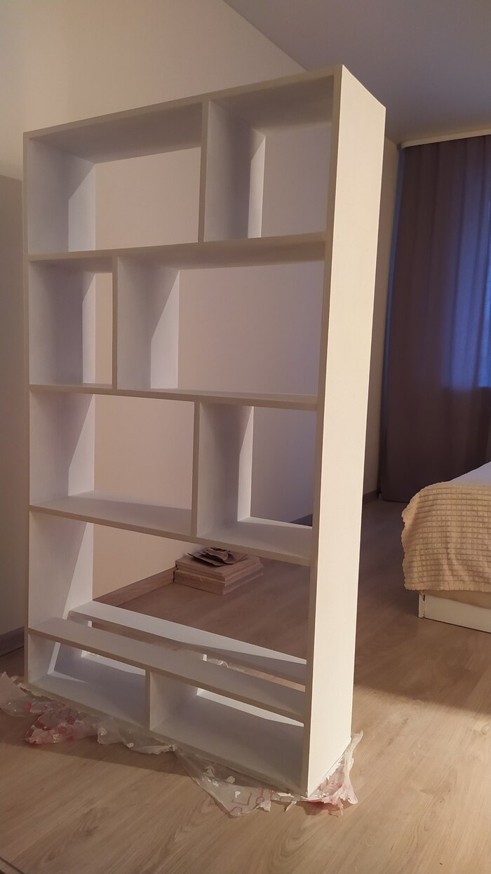 В общем витрина была разобрана, распилена и собрана вот в такой стеллаж.