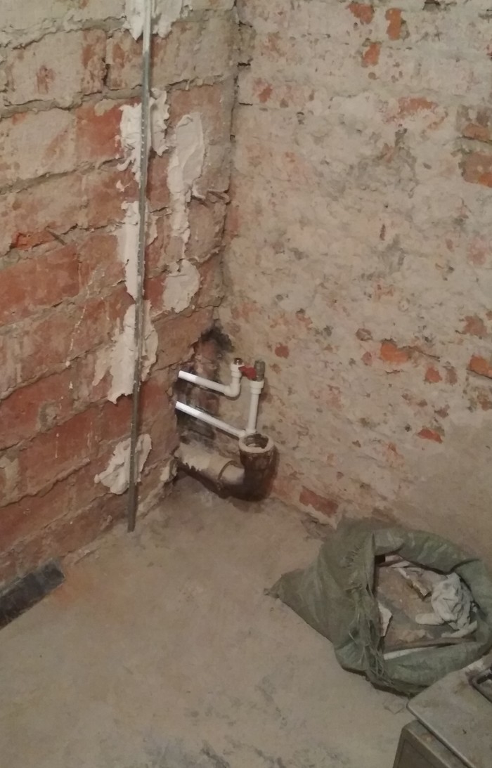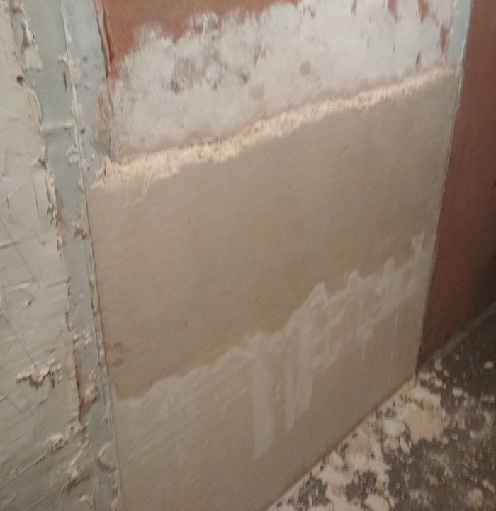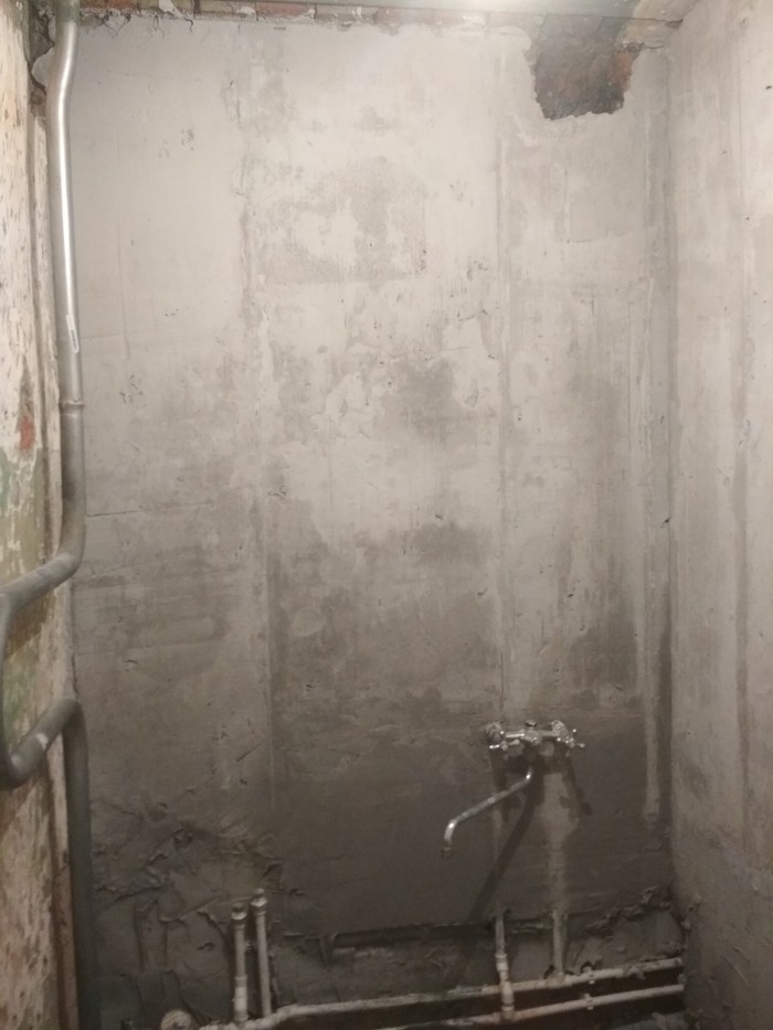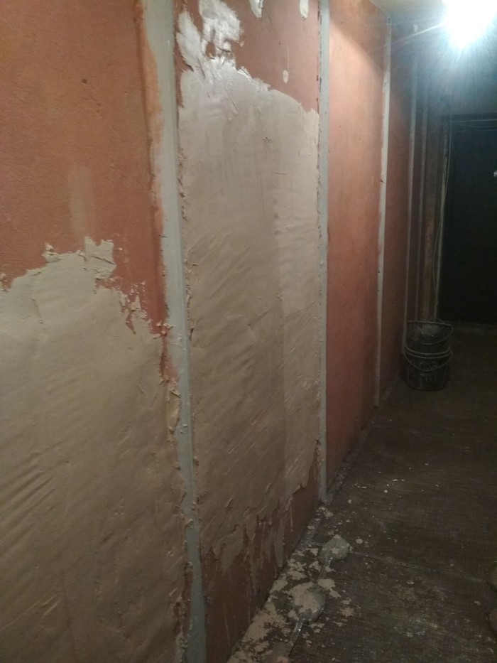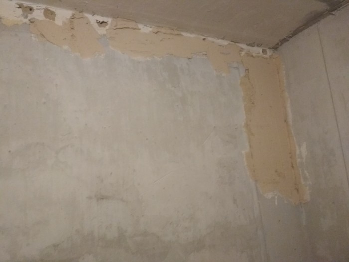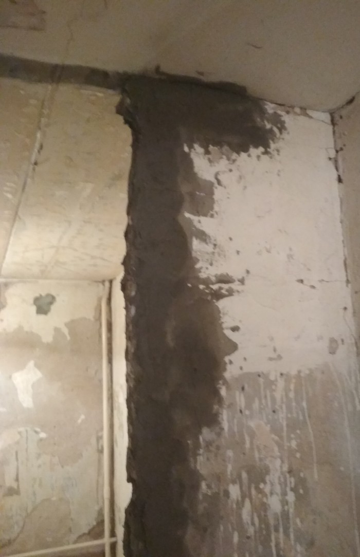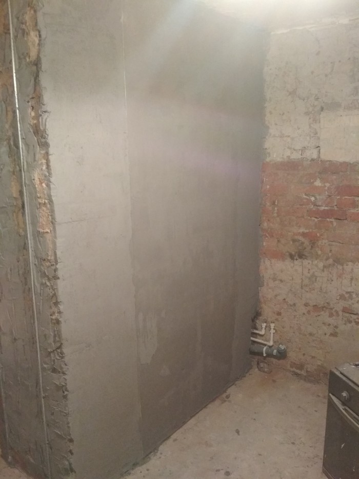 Во-первых, закончил основные штукатурные работы. Доделал угол кухня-ванная: