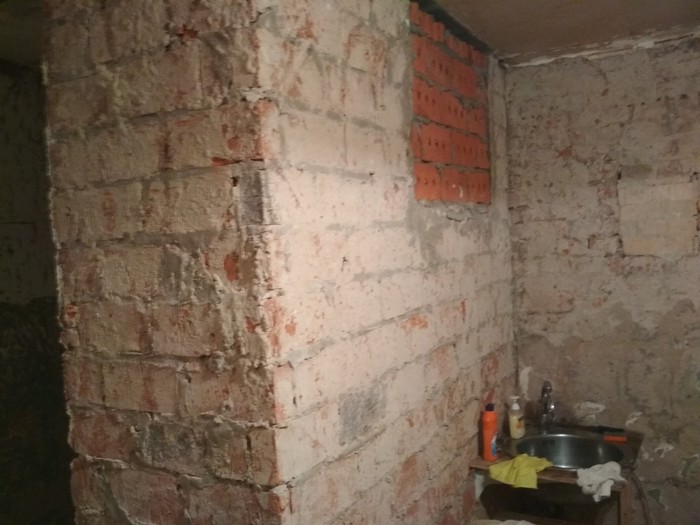 Супруга параллельно чистила кирпичи и заделывала в них щели на кухне- хочет оставить часть стены именно кирпичной, возможно с покраской. А может, прозрачным лаком покроем. Это её епархия, я в это совсем не лезу =)