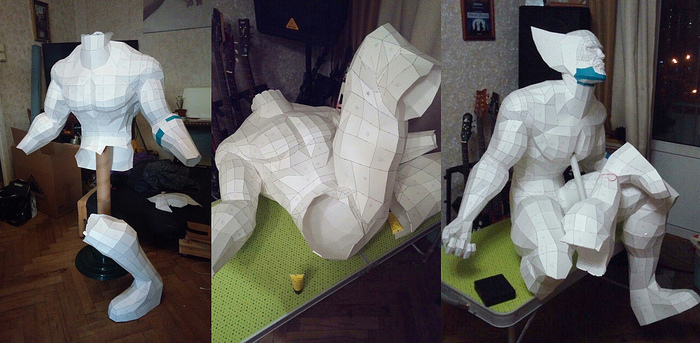 Процесс сборки туловища и примерка башки. Прошу прощения за срач здесь и дальше((