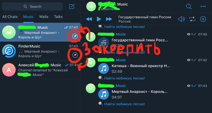 — Пусть в папке "Музыка" наш плейлист и бот будут закреплены всегда сверху