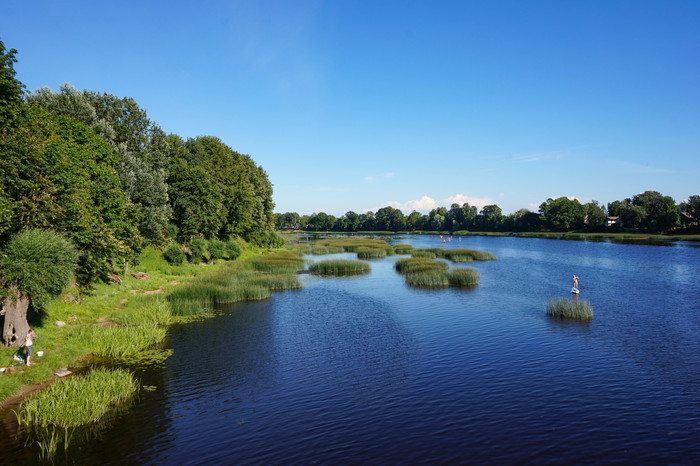 По речке Салацгрива плавают стайки на супах до 20 человек.