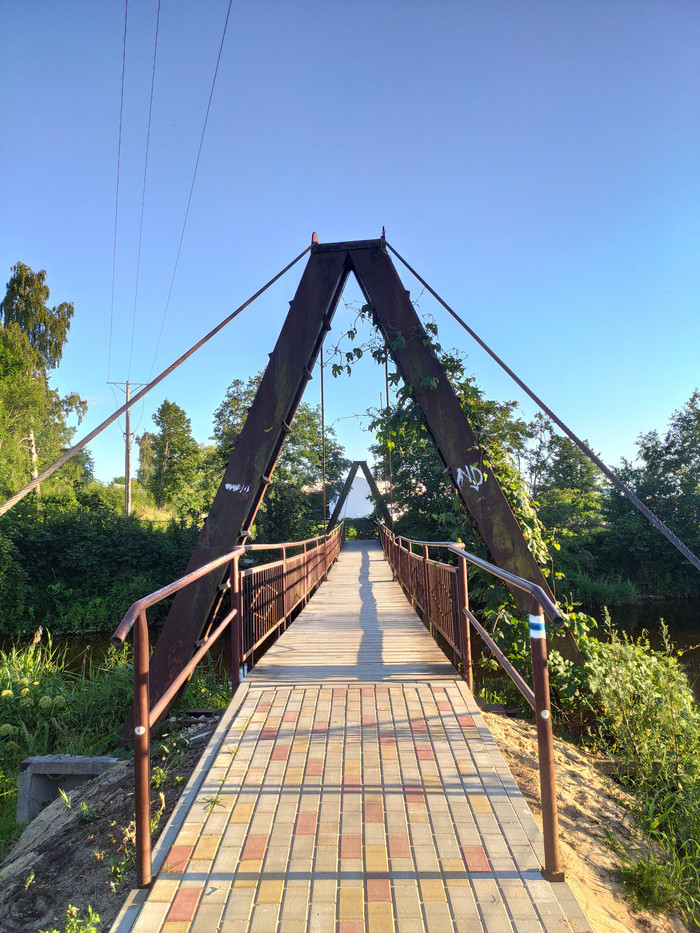 В Zvejniekciems добираюсь на вечерней электричке, к пляжу дорога ведет через прикольный мостик.
