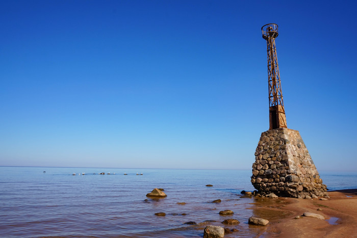 Прикольный маяк Kurmrags lighthouse. уже солнце взошло и в тени прибрежных деревьев не укрыться, встаю на отдых и купаюсь в море. водичка бодрит но весело!
