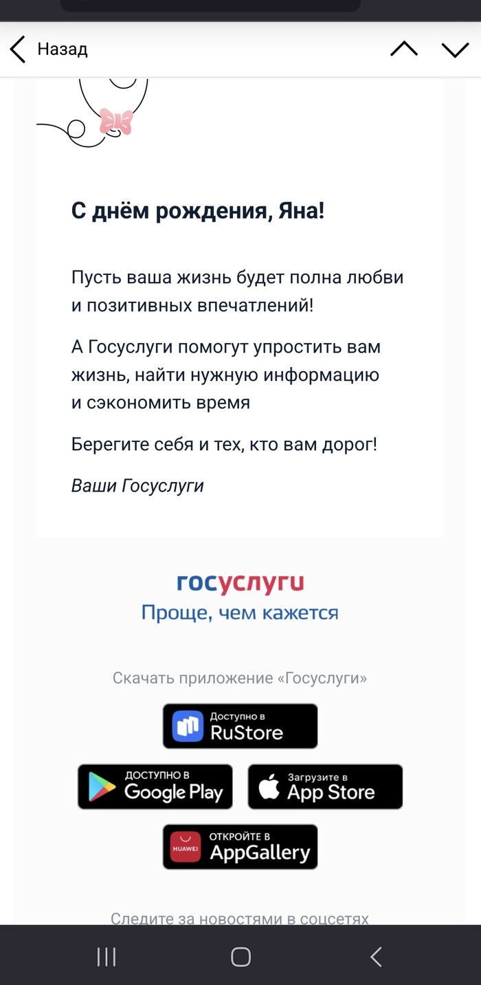 А в день рождения сестры на почту ей приходит поздравление с днём рождения от госуслуг. Как это может быть, если человека уже нет?