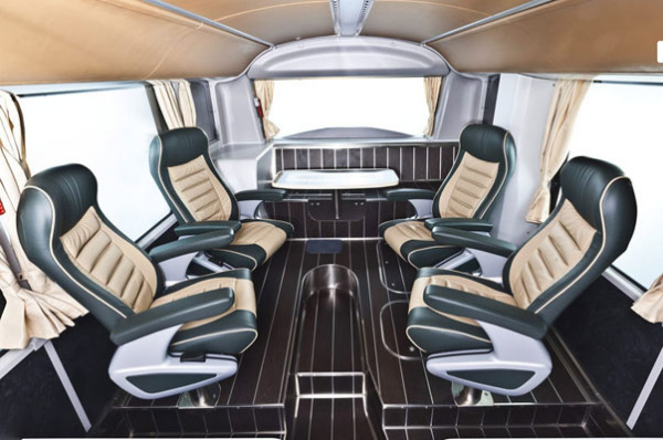 Один из троллейбусов предназначен для членов королевской семьи, неудивительно, что интерьер его просто роскошный. Вместо обычных сидений в нём обустроили 17 шикарных кожаных кресел, установив их на полу из дуба. Более того над надколёсными арками поставили деревянные подставки с плоскими мониторами. Потолок оббит кожей. Между кабиной и салоном установлена стеклянная стена. Вход в салон возможен только через две задние двери. На передней площадке оборудована небольшая кухня с холодильником.