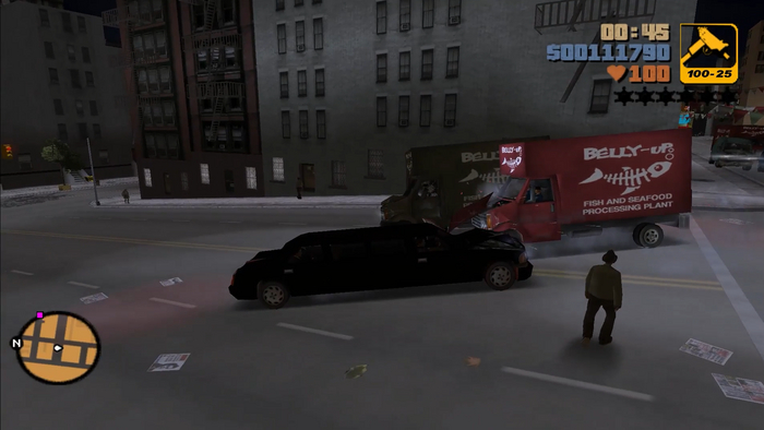 Свой шок от того, когда я заметил, что в GTA 3 нет никакой карты - я запомнил на всю жизнь... Я очень долго пытался найти карту игры: залазил по всем пунктам игры, даже искал ее в настройках, а даже и вовсе копался в папке с файлами игры. Из-за отсутствия какой-либо карты, мне было тяжело ориентироваться по Либерти Сити, и для меня даже первые миссии в GTA 3 проходить было довольно трудно. Если бы я тогда знал, насколько дикий пи@дец будет меня ждать на дальнейших миссиях GTA 3 из-за отсутствия карты - я бы сразу забросил игру. Хотя, первые миссии Тройки на Луиджи и Джоуи мне вообще не запомнились - они были простые и унылые. И чтобы не сдохнуть от скуки, я заранее выпросил у Сержа листок с чит-кодами и начал ими баловаться. Что я точно помню, так это чит на танк, с которым я воевал с копами, а также безперестанно вводил код GUNSGUNSGUNS на всё оружие, что только есть в игре. Иногда, я тупо прикалывался с кодов, к примеру, постоянно вводя чит на взрыв транспорта ради угара. Впрочем, поначалу в GTA 3 я только то и делал, что без конца настрачивал кучу кодов, насилуя несчастные клавиши на клавиатуре и фактически забив на сюжетные миссии - их я лишь изредка выполнял.