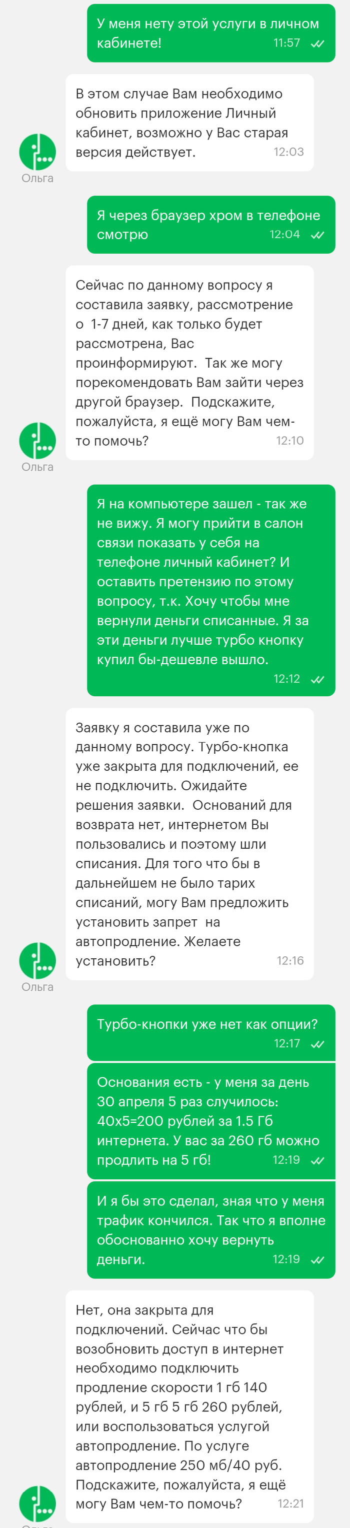 Так вот откуда 15 списаний по 40 рублей, вот куда ушли 600 рублей, теперь все встало на свои места. Автоматически подключили услугу, без уведомления и списывали бабуси. Мы же наученные пикабу, что в таком случае нужно писать оператору и деньги вернут, так и поступили, вот переписка с оператором: