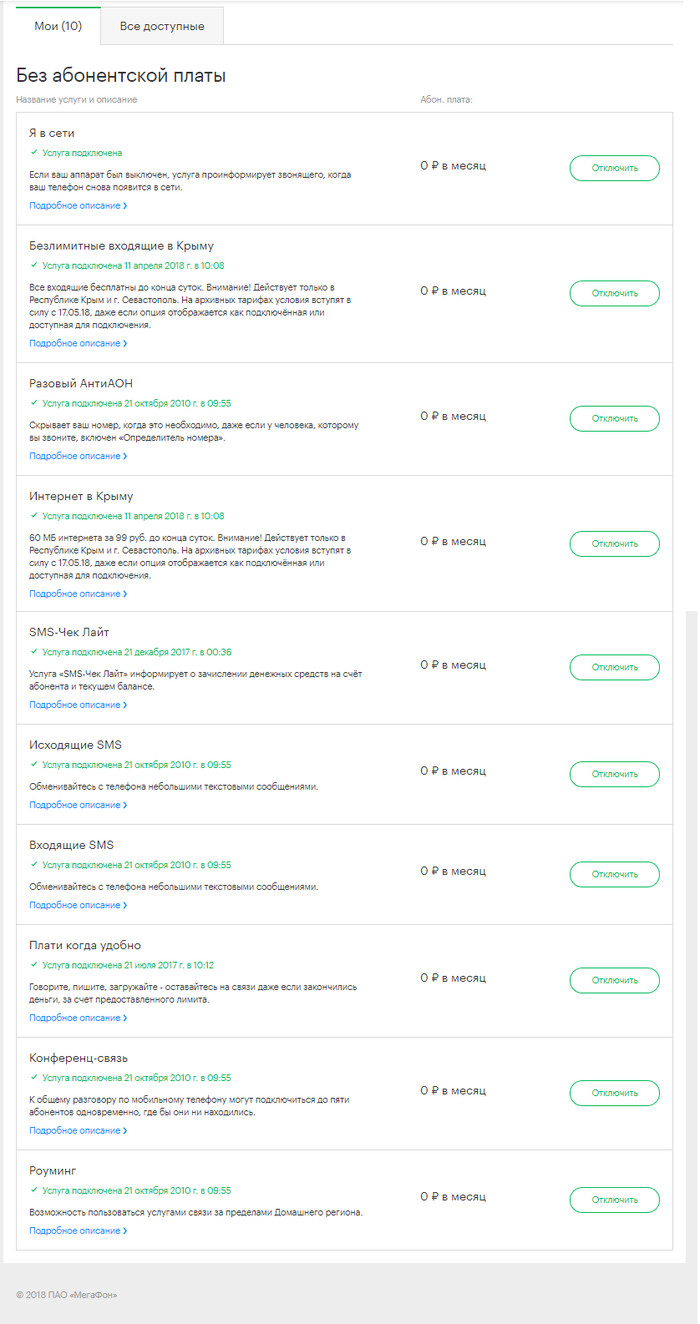 1. Это опция вшитая в тариф, хотя оператор постоянно отсылал в личный кабинет отключить эту услугу, а ее там нету!
