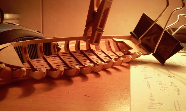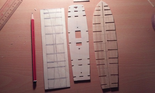 Вырезаем шпангоуты и закрепляем их на килевой доске.