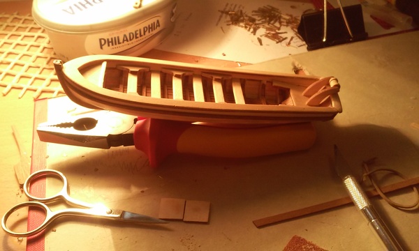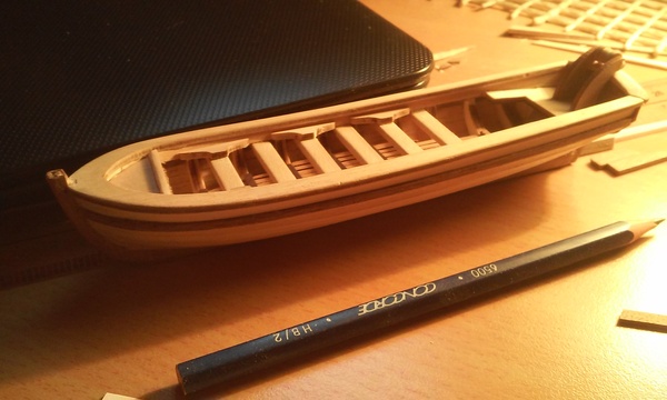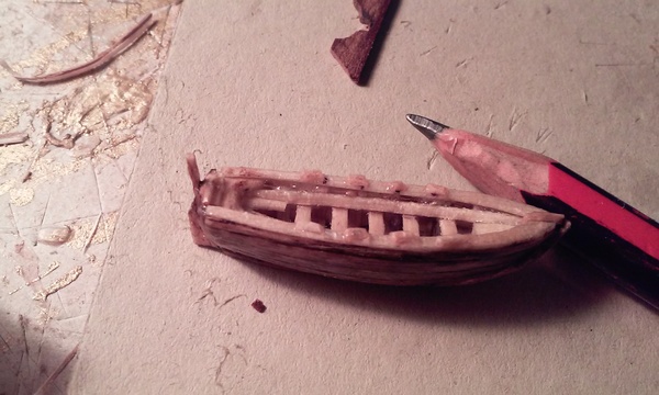 шлюпку сделал наборную, не из балванки. По-взрослому.