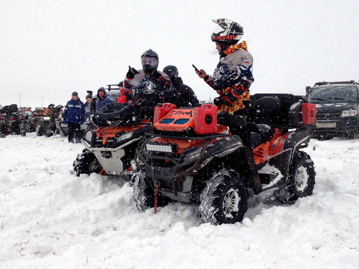 Вернулся весёлый, значит, я угадала, зачем эта палатка нужна. Поехали, говорит, на старт. Я, типа, буду пилот, а ты — штурман. Вот не мог он, извращенец, в такую игру дома вечером поиграть. Нахрена на мороз-то ехать.А вокруг нас народу собралось… Как на барахолке, пока её не закрыли. Хорошо, что какие-то мужики в жилетках, дорожники или менты — не поняла, разогнали всех на кучи чисто по-пацански.Сначала едут нормальные пацаны на Крузаках с большими колёсами. Потом — народишко типа нас. Ну а колхозников и студентов вообще последними отправили. Вдруг ещё шаркнут кого на своих телегах, там же ни страховки, ни прав, бухие все.