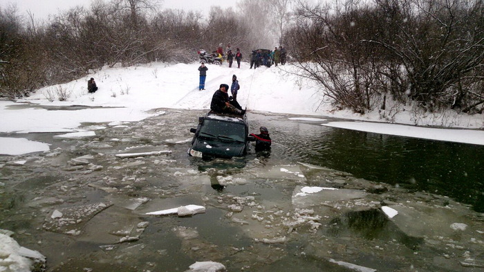 — Секундочку, дорогой. Ты что, серьёзно? На машине… по реке..— Ну да, тут, наверное, не глубоко. Видишь, Прадик на той стороне уже стоит.— А если там яма посередине? Потонем же к едреням.— Не очкуй. Поедем потихоньку, если что, я почувствую, остановлюсь и обратно выйду.