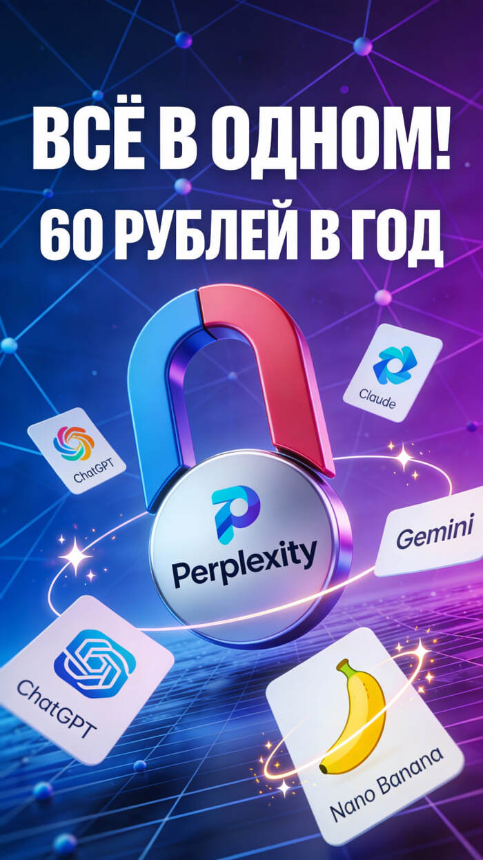 Perplexity - сервис с встроенными топовыми ИИ: ChatGPT, Claude, Gemini, Nano Banana для текста и картинок. В России работает без VPN в отличии от ChatGPT, что очень важно!