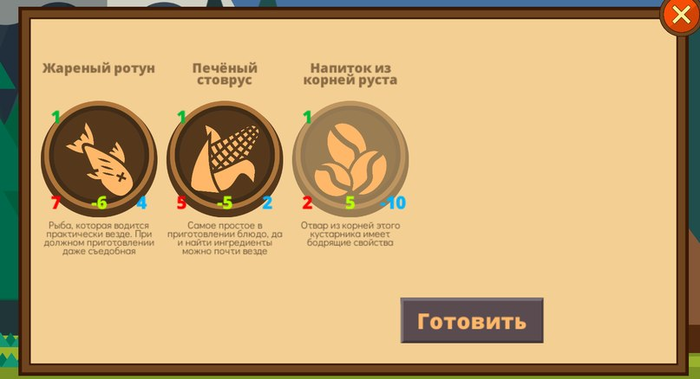 Буквально сегодня систему с провизией полностью переделал. Сама провизия, как основной ресурс, никуда не делась, но теперь, если её не осталось, игра не кончается. Провизию всё так же можно покупать за золото, а тратить её теперь нужно на приготовление еды.Собственно, еда имеет несколько характеристик: