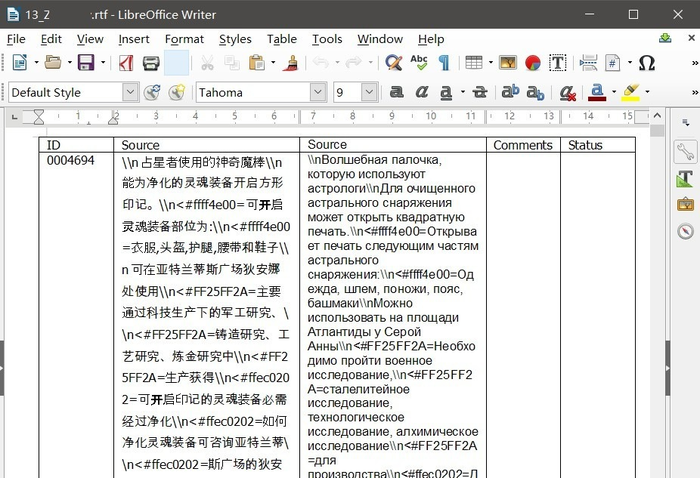 Российская компания купила популярную на каком-то рынке игру. Разработчики передали покупателям архив с игровыми файлами без внятных комментариев («разберётесь»). Инженеры в компании-покупателе расковыряли игру, достали всё, что похоже на текст, подписали как смогли («14_Loc0_part5.rtf») и отдали компании-переводчику.