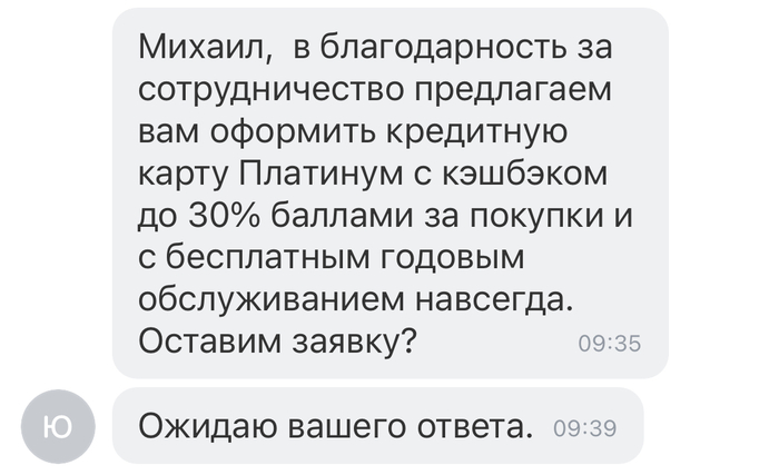 UPD: как вишенка на торте, в конце диалога они мне предложили оформить кредитную карту. Пзвхахахахах. Это максимальные гении «маркетинга»